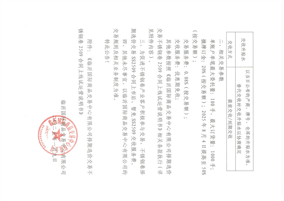 關(guān)于擇期選價(jià)交易不銹鋼卷2509上線試運(yùn)營(yíng)的公告