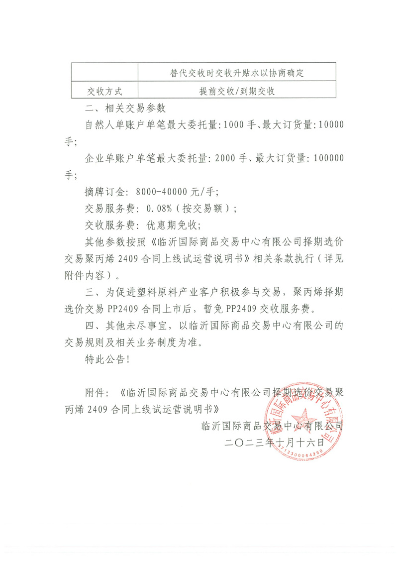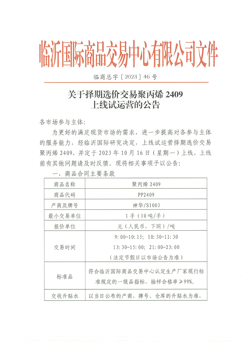 4.臨沂國際商品交易中心有限公司擇期選價交易聚丙烯2409合同上線試運營說明書.doc